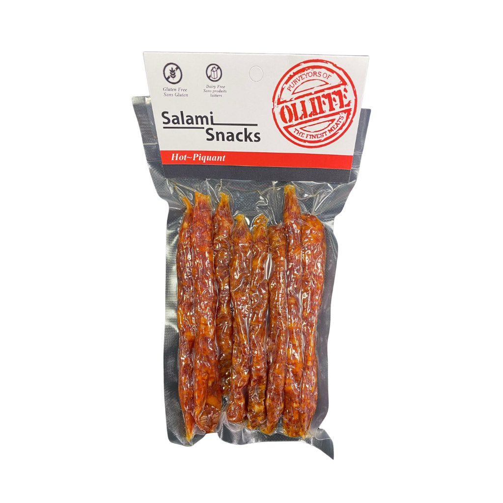 Expertly made in-house by Olliffe, these salami sticks are crafted using high-quality ingredients and traditional techniques to ensure a premium, well-balanced taste. Their signature heat is perfectly complemented by robust seasoning, creating a satisfying and flavourful snack.