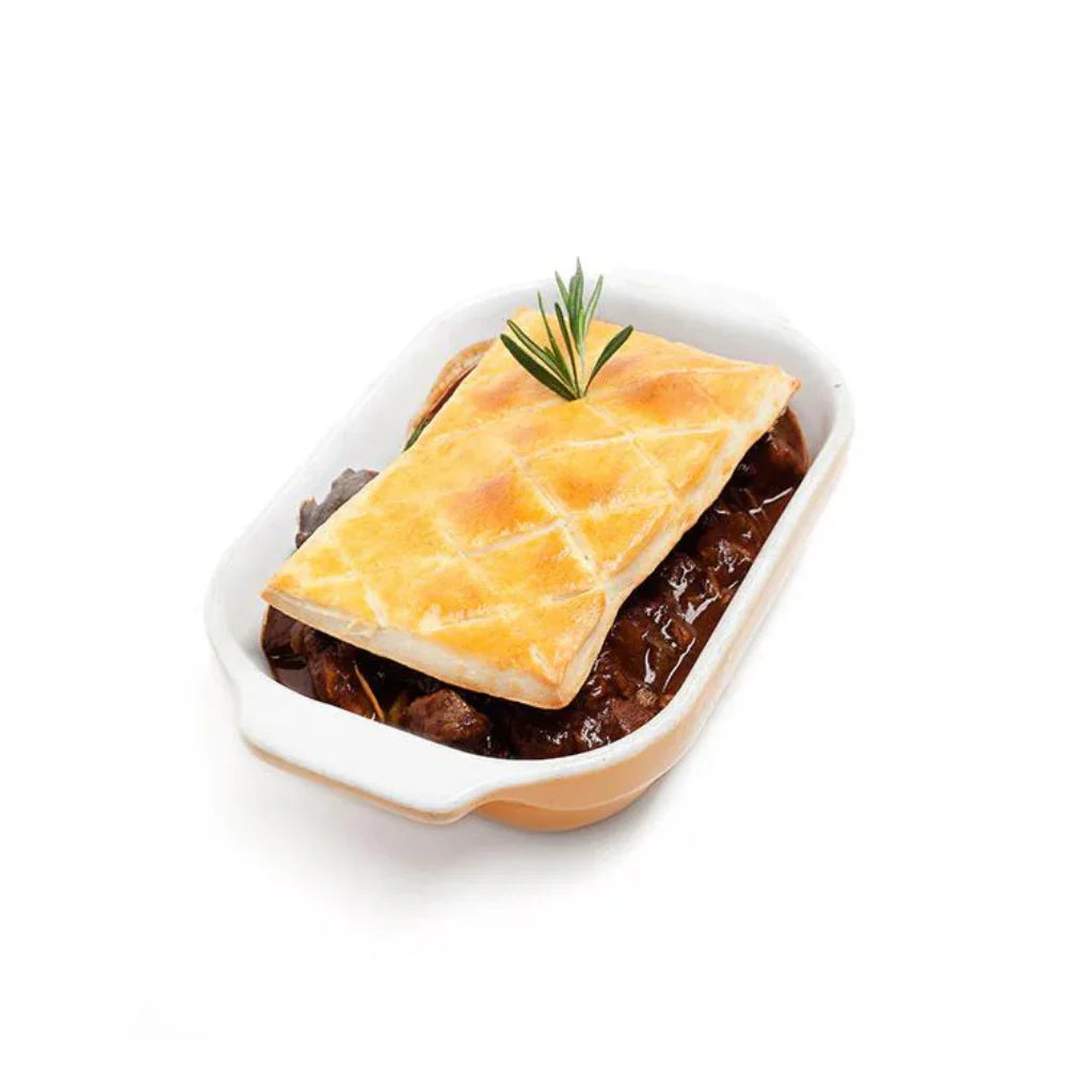 Bring the warmth and richness of a traditional British pub into your home with this exceptional steak and ale pie. Crafted with tender, slow-stewed steak, Guinness beer, and a medley of pearl onions, mushrooms, and aromatic herbs, this hearty dish is encased in a golden, flaky pastry. Enjoy it on its own or serve with buttery mashed potatoes and roasted vegetables for a truly comforting meal.
