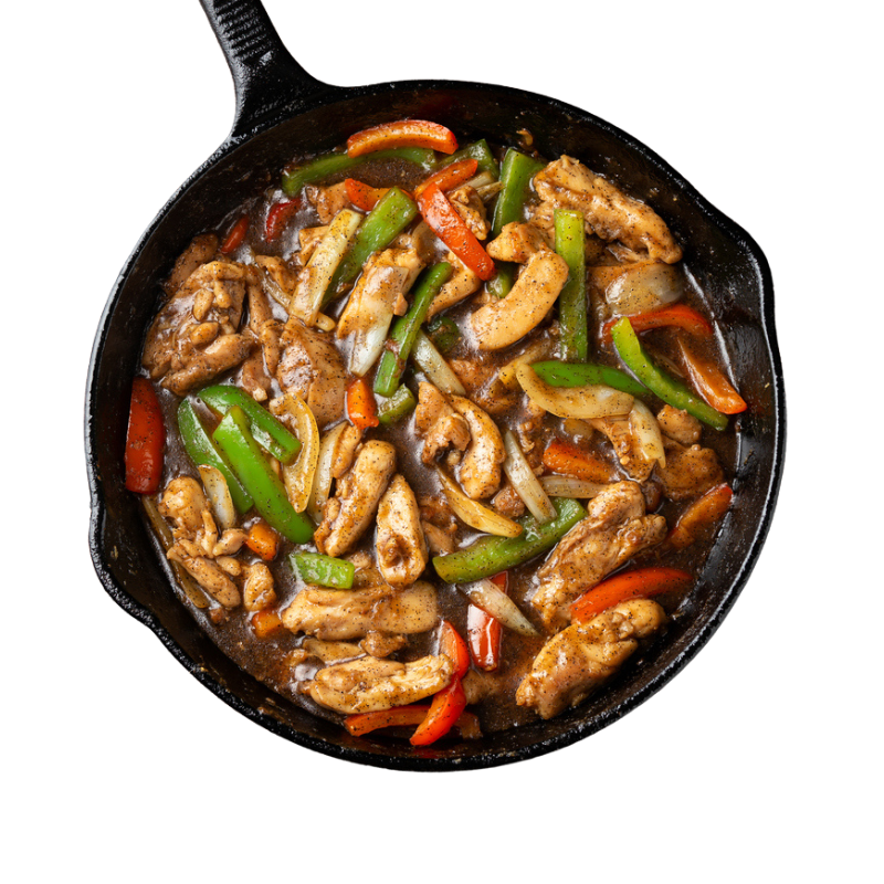 This hearty and flavourful chicken stir-fry is a nutritious, ready-to-serve meal that makes dinnertime effortless. Featuring tender, cooked chicken breast tossed with crisp bell peppers, onions, and a savoury blend of soy, hoisin, and teriyaki sauces, it delivers a perfect balance of sweetness, umami, and gentle spice. Simply heat and serve over steamed rice or noodles for a wholesome, satisfying dish.