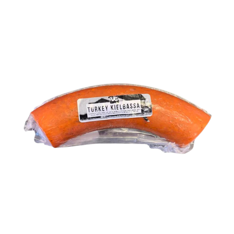 Crafted by VG Meats, a family-owned business in Norfolk County, this high-quality turkey kielbasa is made from Ontario-raised poultry sourced from farms that practise holistic management. This dedication to local farming traditions ensures exceptional taste and premium quality in every bite.
